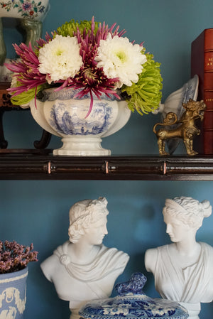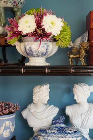 - Beautiful antique Staffordshire blue and white transferware lidded tureen, circa. 1880