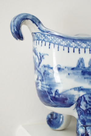 - This fab find is great antique condition with some glaze imperfection (see photos). No markings on the bottom. It measures approximately 13” L (handle to handle) x 7.25" H x 6" W