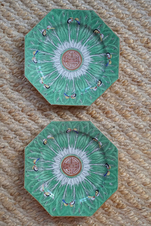 Antique Octagonal Famille Verte Bok Choy Plate