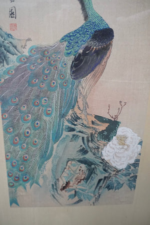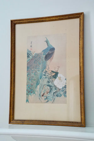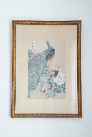 - A beautiful antique signed peacock watercolor