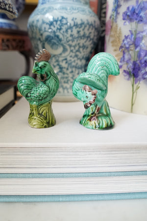 Pair of — Vintage Chinese Export Green Mud Chicken