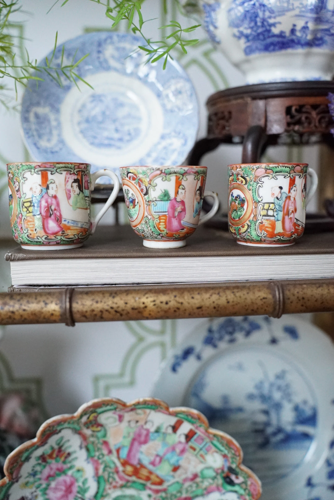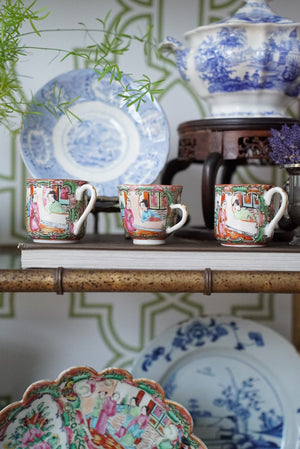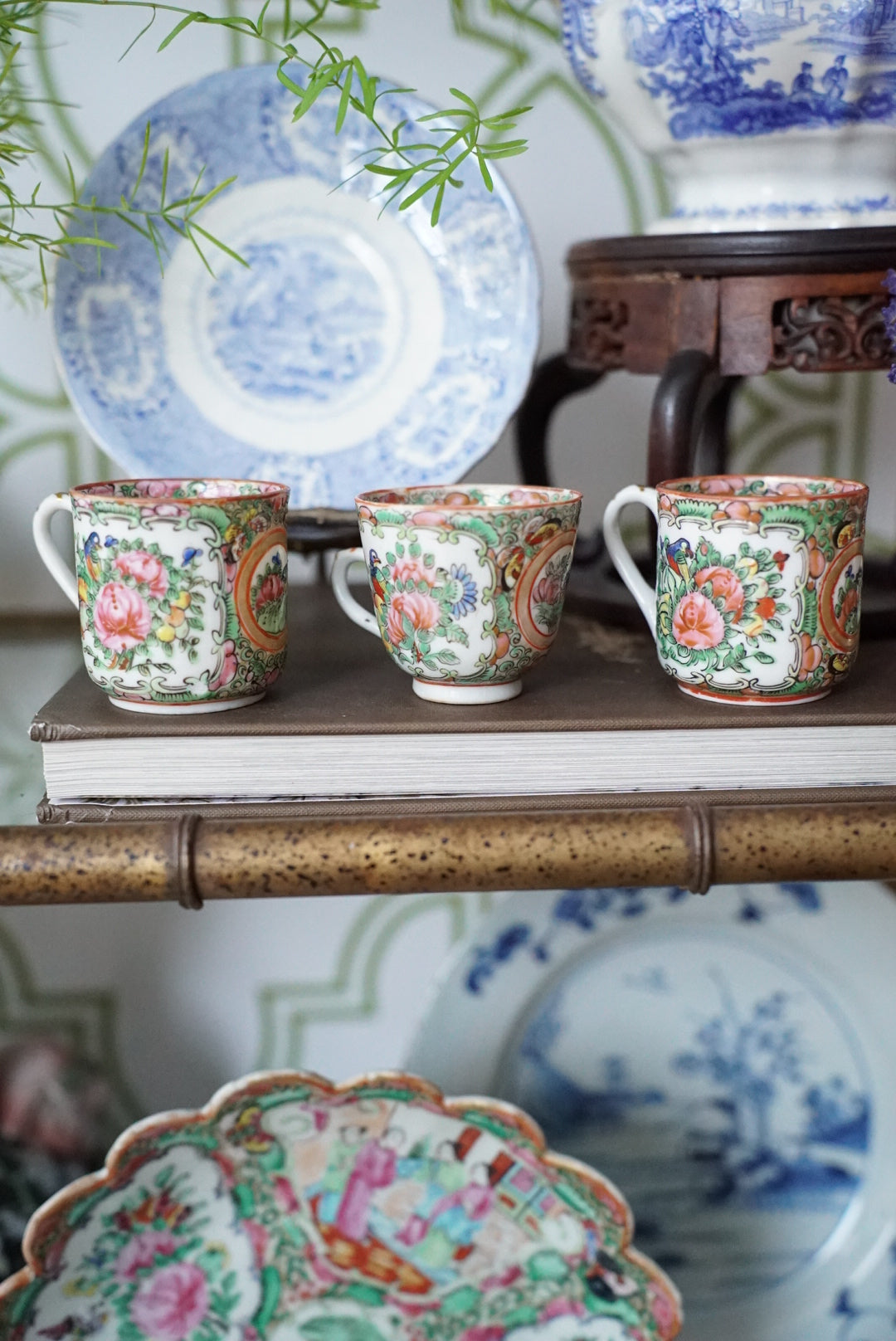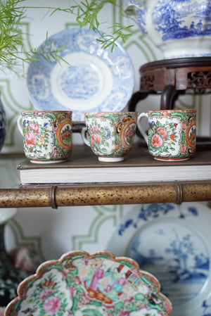 Set of 3 — Antique Chinese Export Rose Medallion Cups