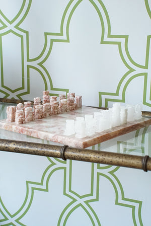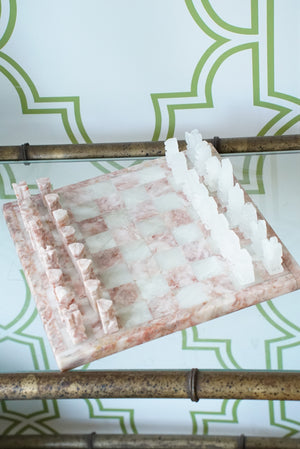 Pink and White Onyx Chess Set