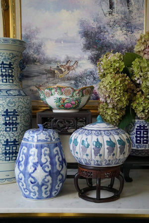 - Classic chinoiserie blue and white pumpkin in a unique shape. It can be easily mixed and layered with your chinoiserie pumpkin collection.