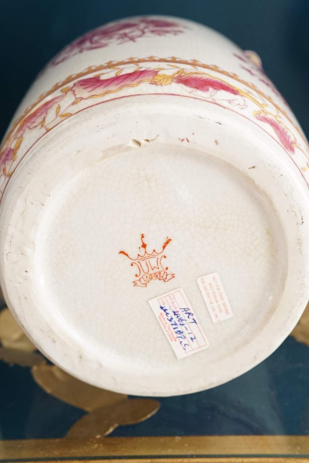 - Splendid pink and white vase with breathtaking rose branch handles. Hand crafted and painted by the one and only United Wilson