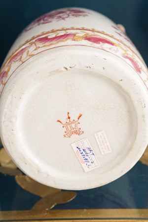 United Wilson Large Pink and White Vase with Rose Branch Handles