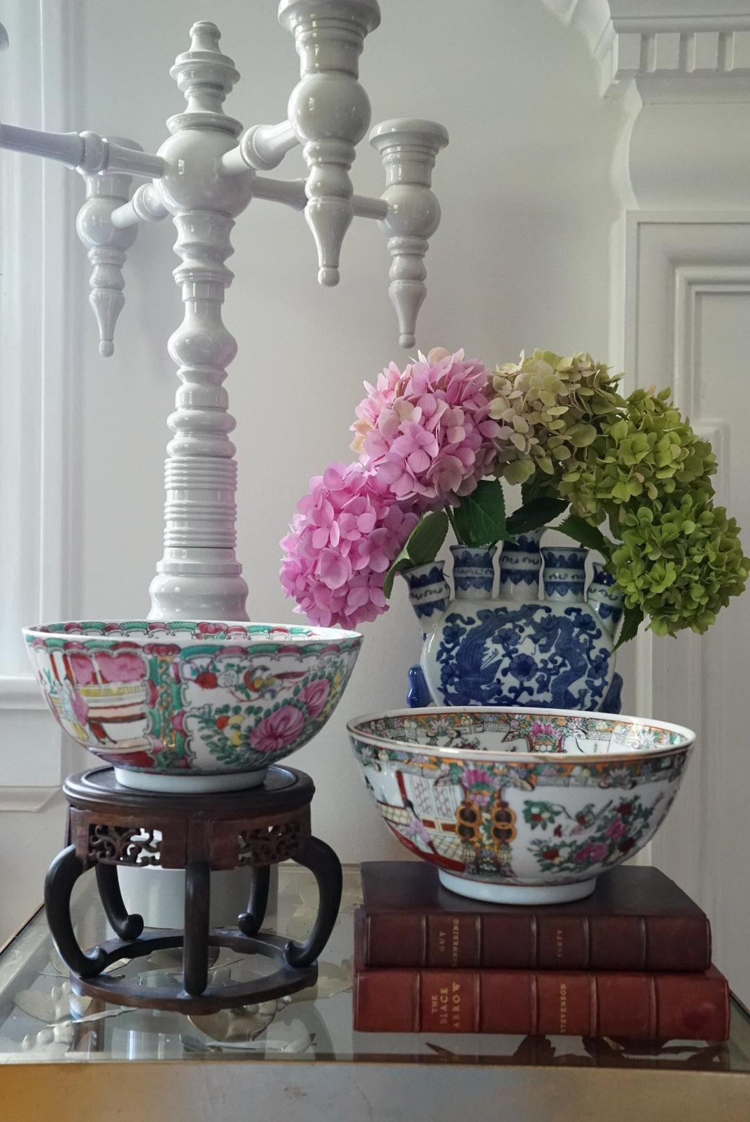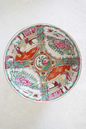 - A beautiful centerpiece bowl in classic rose medallion, loaded with hand painted details inside and out.