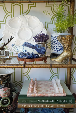 - Photo that was styled on a shelf was taken prior to polishing process which gives an idea of its aged look