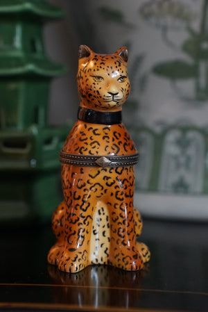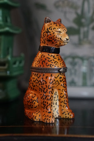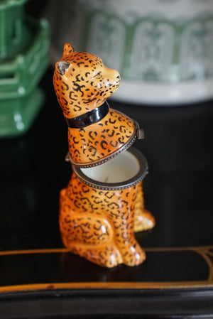- Charming vintage cheetah porcelain trinket box which came with an unlit candle inside