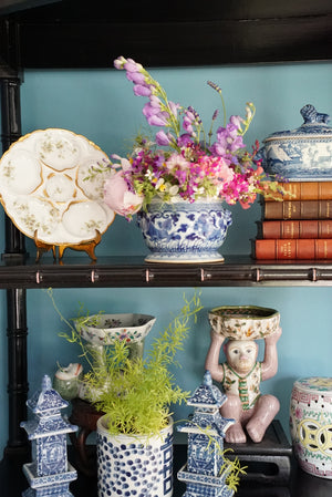 Vintage Chinoiserie Pink and Green Monkey Bowl