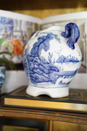 - This gorgeously hand crafted and painted heart-shaped vase truly wins our blue and white loving heart inch-by-inch