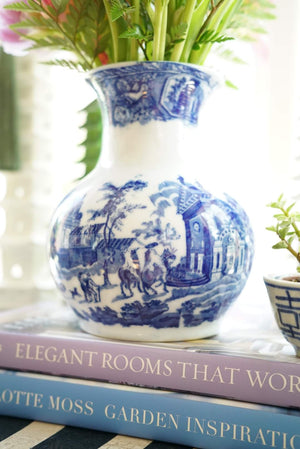 Vintage Victoria Ware Ironstone Flow Blue Transferware Vase