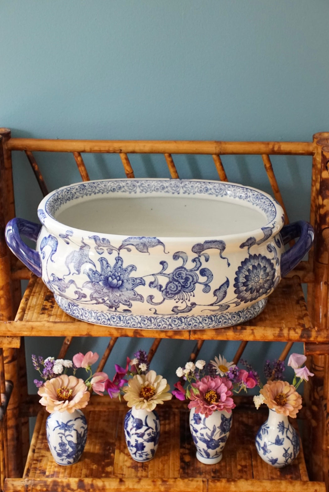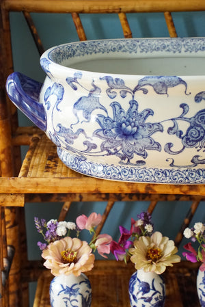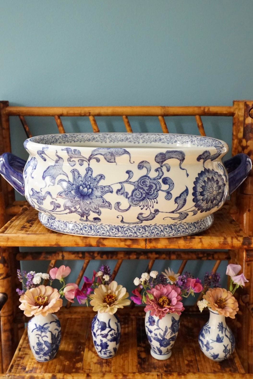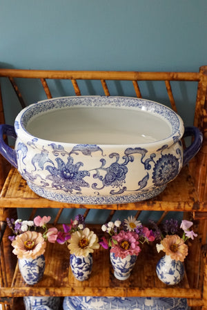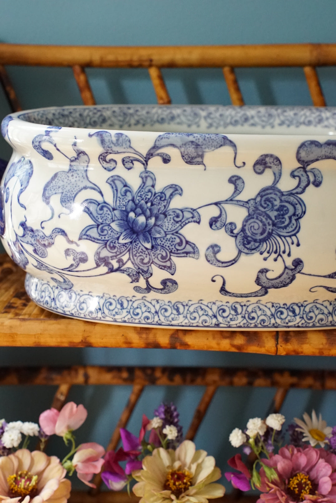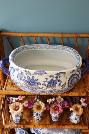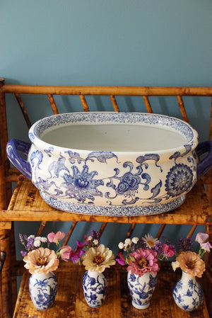 - Classic extra large vintage footbath in timeless blue and white floral pattern