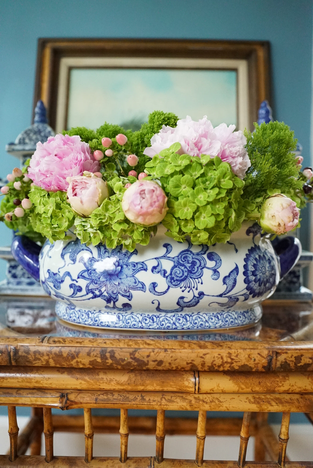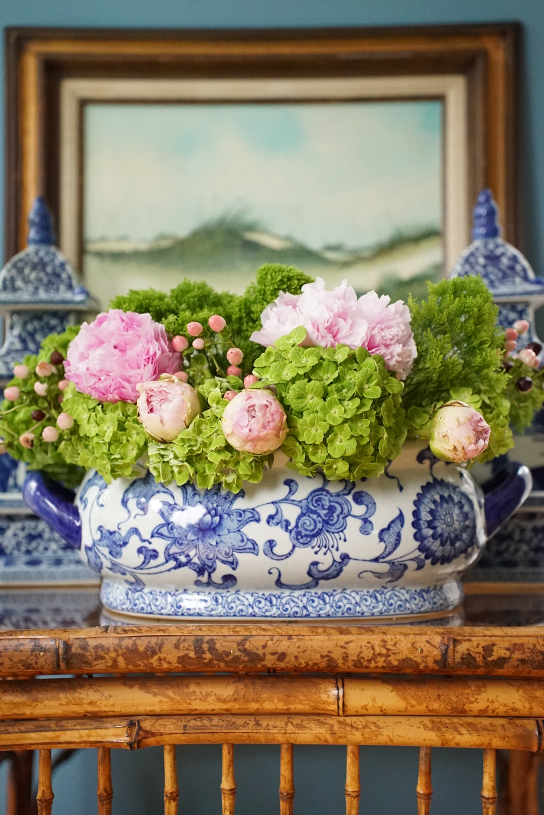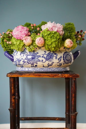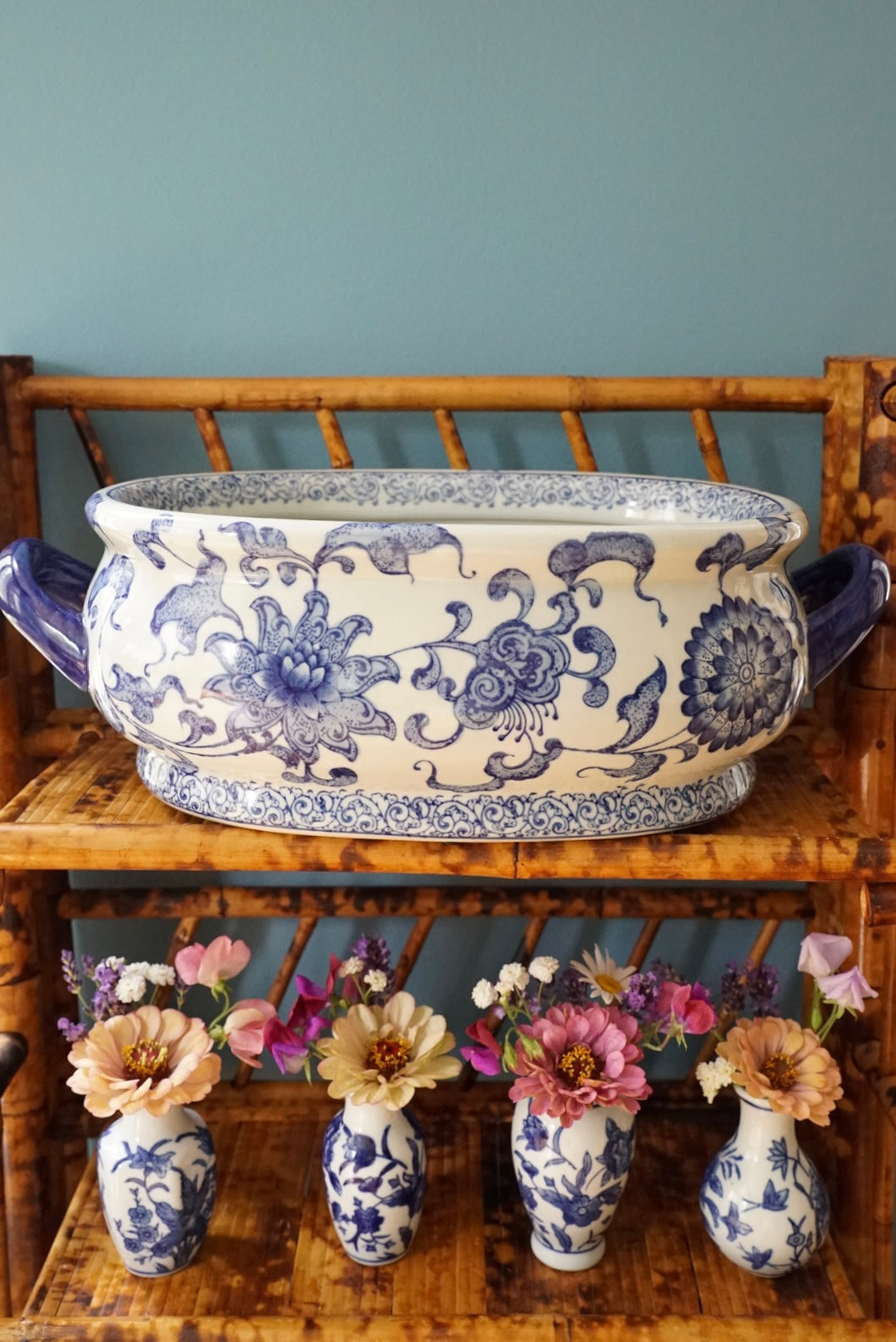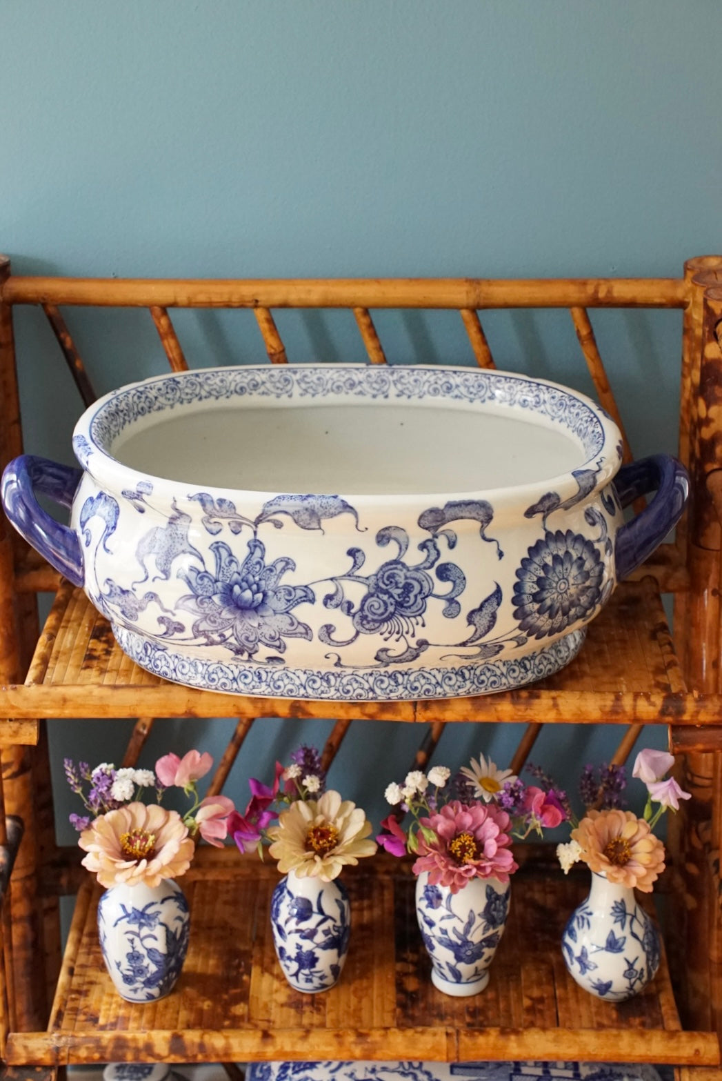 - Classic extra large vintage footbath in timeless blue and white floral pattern
