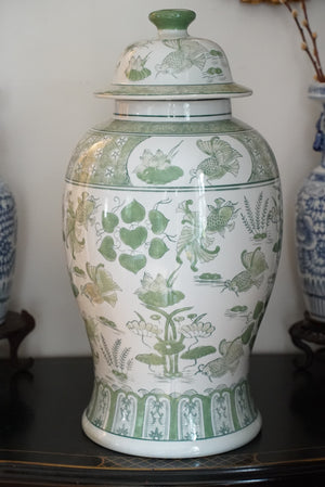 - Decorated in lily pond scene with water lilies, gold fish and water grass